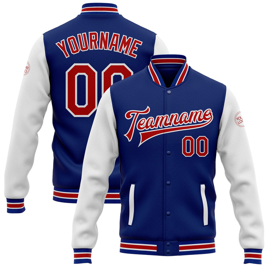 FUNSTUFFPRINT Custom Royal Red-White Bomber Full-Snap Varsity Letterman Two Tone Jacket 3D Baseball Jacket