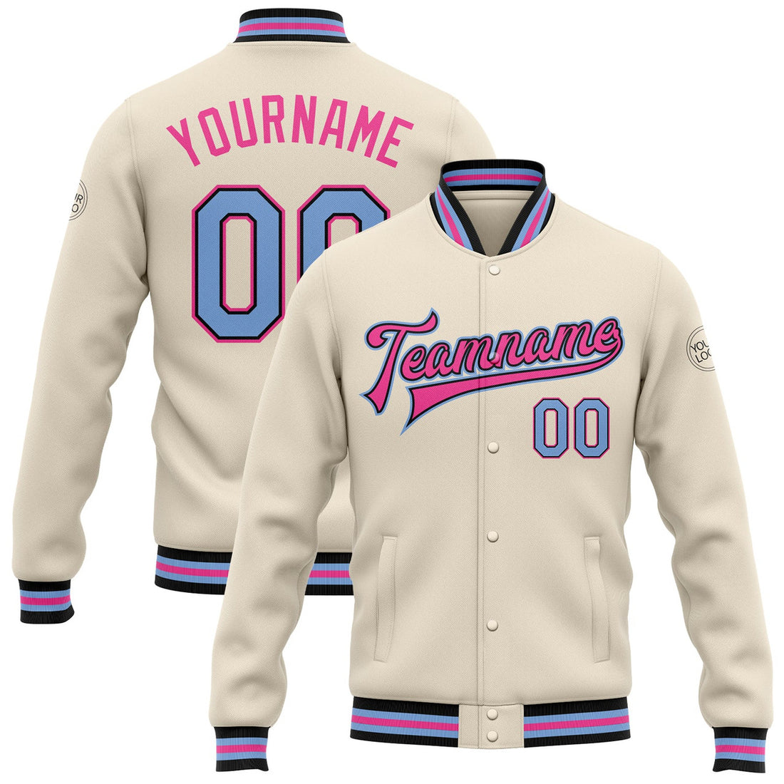 FUNSTUFFPRINT Custom Cream Light Blue Black-Pink Bomber Full-Snap Varsity Letterman Jacket 3D Baseball Jacket