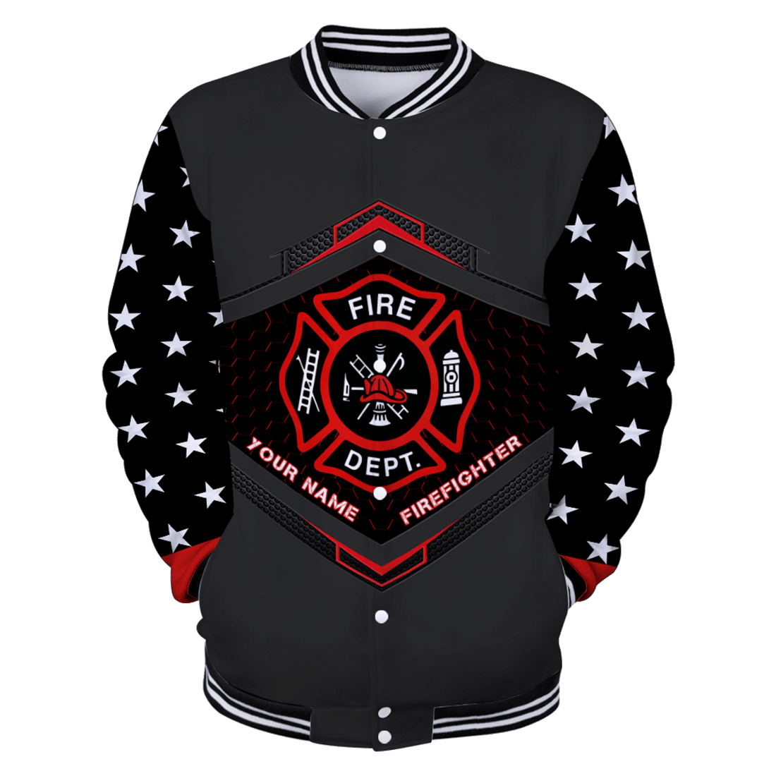 FUNSTUFFPRINT Customize Name Firefighter 3D Baseball Jacket