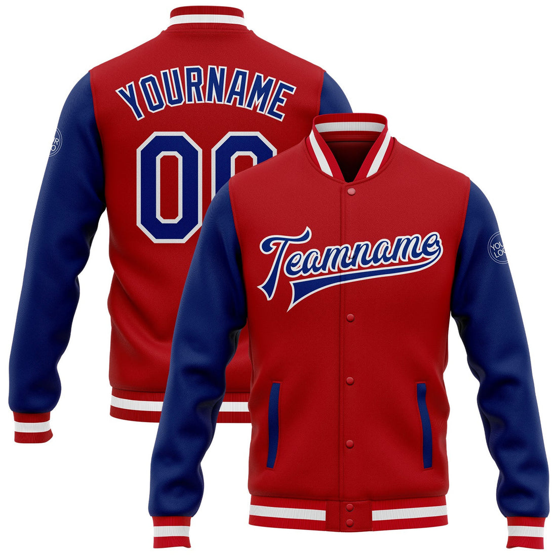 FUNSTUFFPRINT Custom Red Royal-White Bomber Full-Snap Varsity Letterman Two Tone Jacket 3D Baseball Jacket