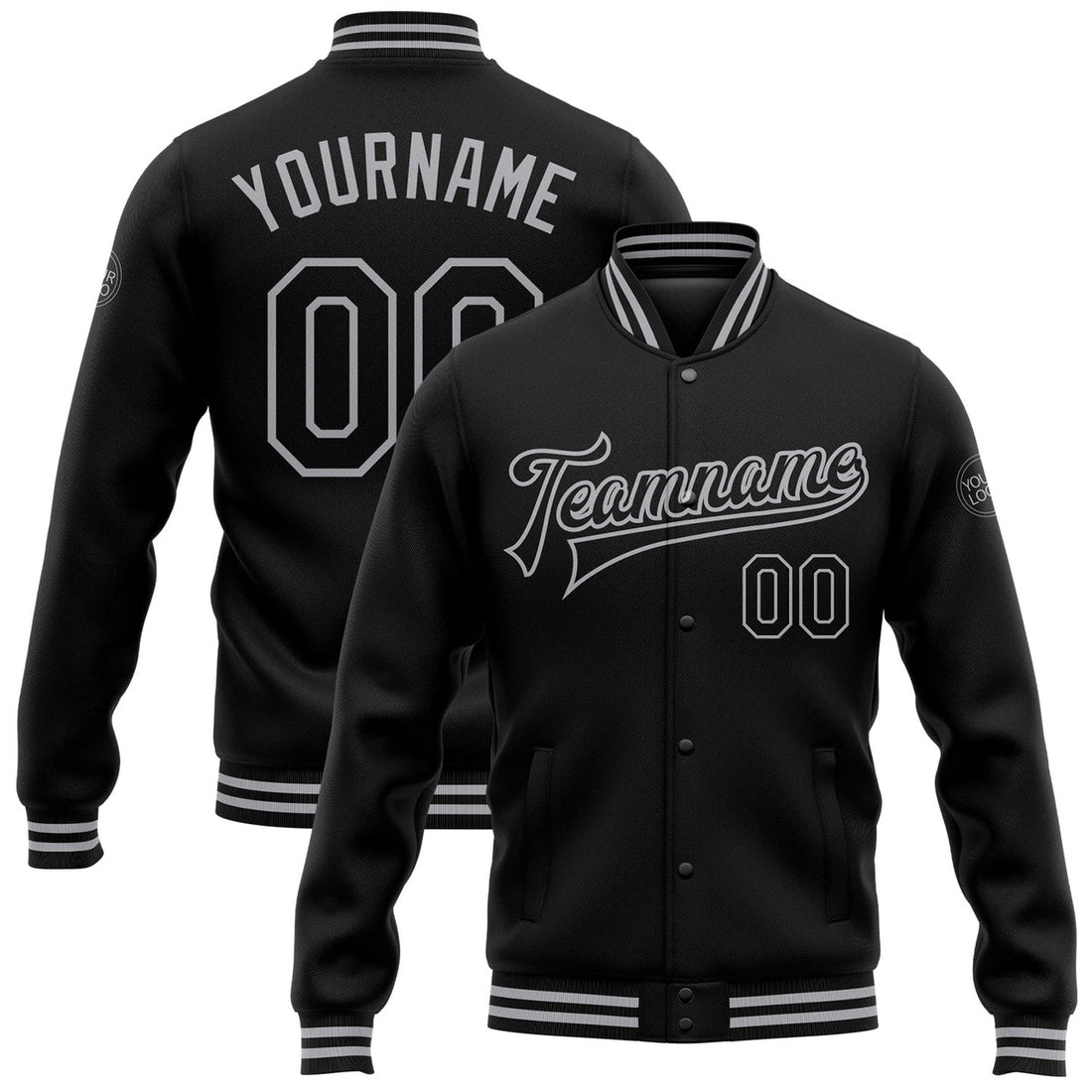 FUNSTUFFPRINT Custom Black Gray Bomber Full-Snap Varsity Letterman Jacket 3D Baseball Jacket