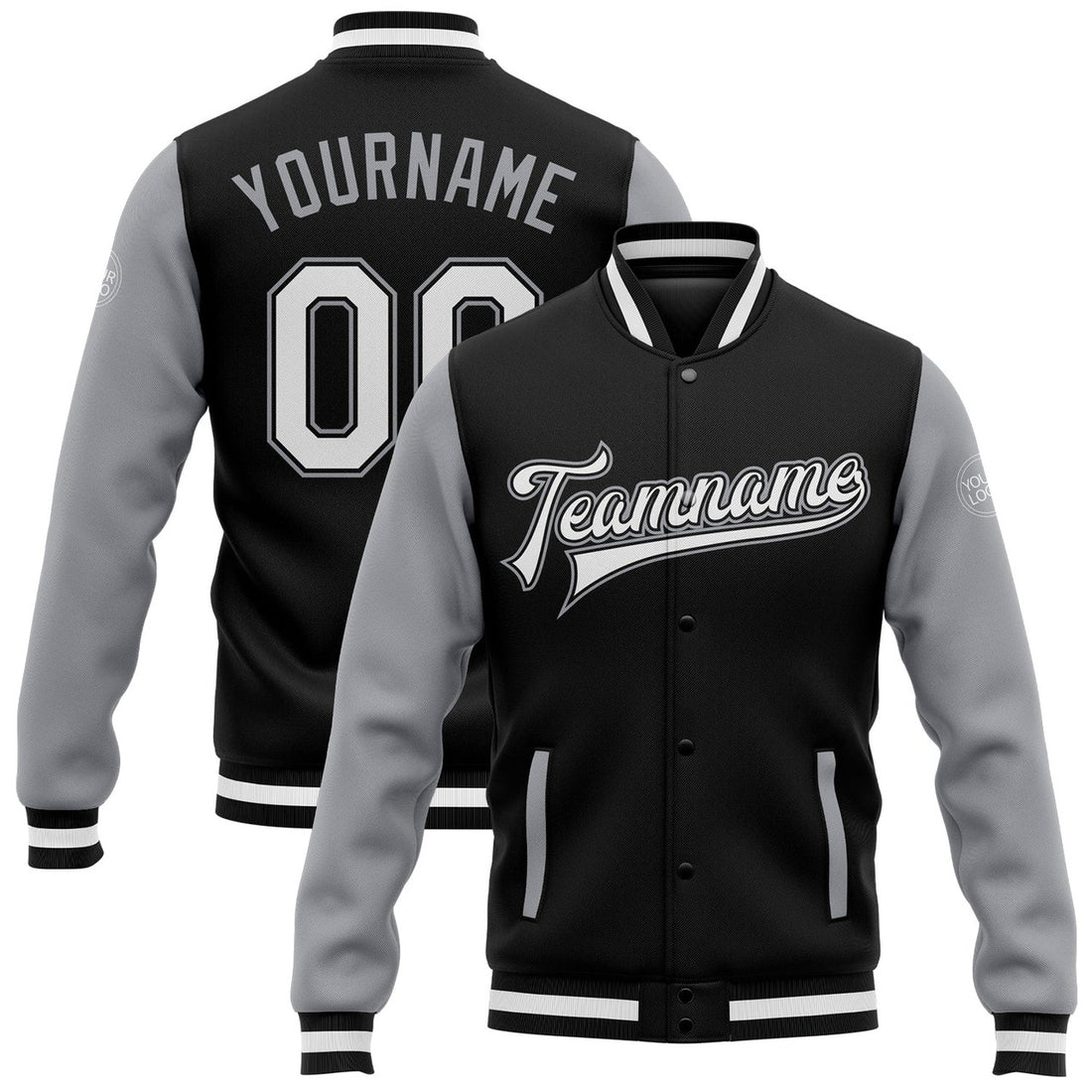 FUNSTUFFPRINT Custom Black White-Gray Bomber Full-Snap Varsity Letterman Two Tone Jacket 3D Baseball Jacket