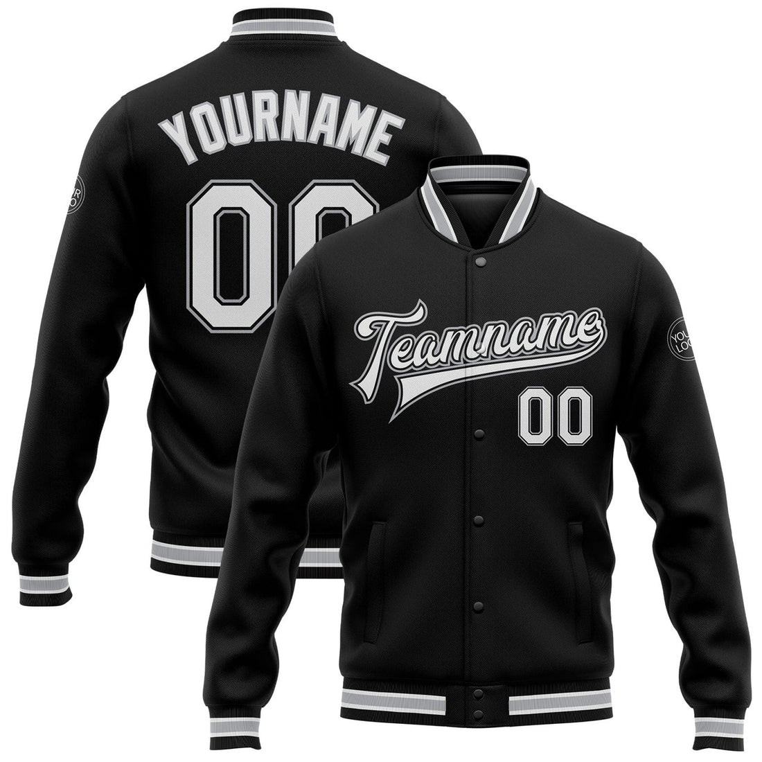FUNSTUFFPRINT Custom Black White-Gray Bomber Full-Snap Varsity Letterman Jacket 3D Baseball Jacket