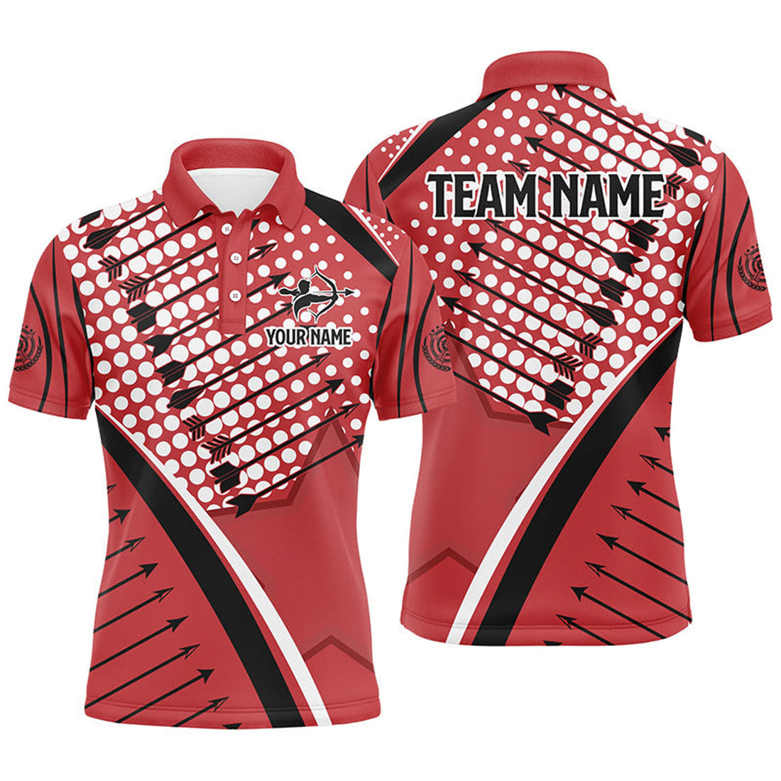 FUNSTUFFPRINT Custom Red Black Archery Arrows Polo Shirts For Men Personalized Name Archery Polo Shirt Size S-5XL