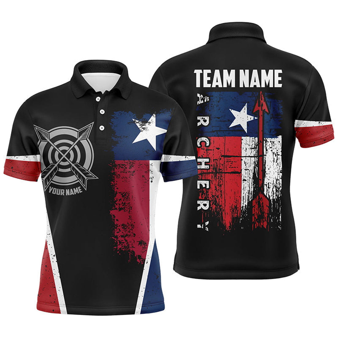 Personalized Vintage Texas Flag Target Archery Polo Shirts For Men Custom Patriotic Archery Shirts