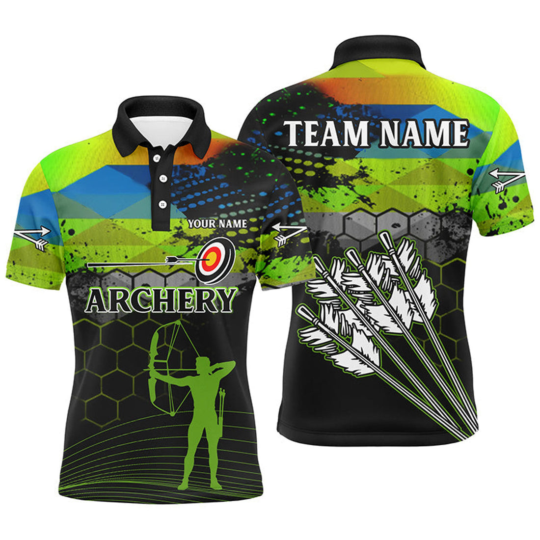 Personalized Green Colors 3D Arrows Archery Polo Shirts For Men, Custom Silhouette Archer Shirts