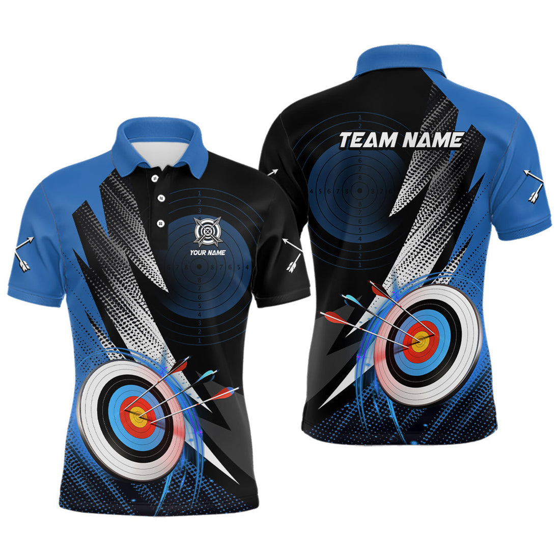 Custom Blue Archery 3d Target Thunder Lightning Personalized Men Polo Shirts, Team League Archery Shirts