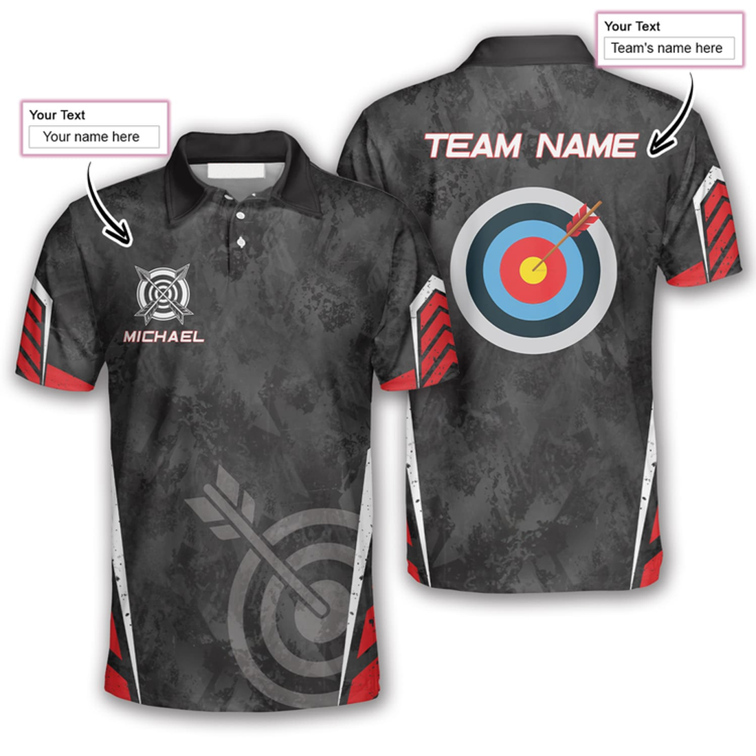 Personalized 3D Targets Archery Polo Shirts For Men, Custom Red Black Arrows Archery Team Shirts