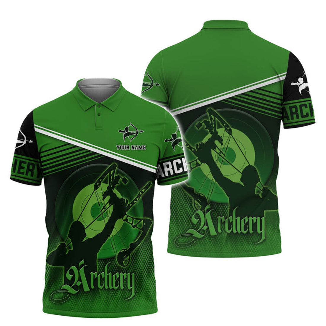 Custom Fully Printed Archery Polos With Customized Name Cool 3D Personalized Polo Shirts For Archery Team