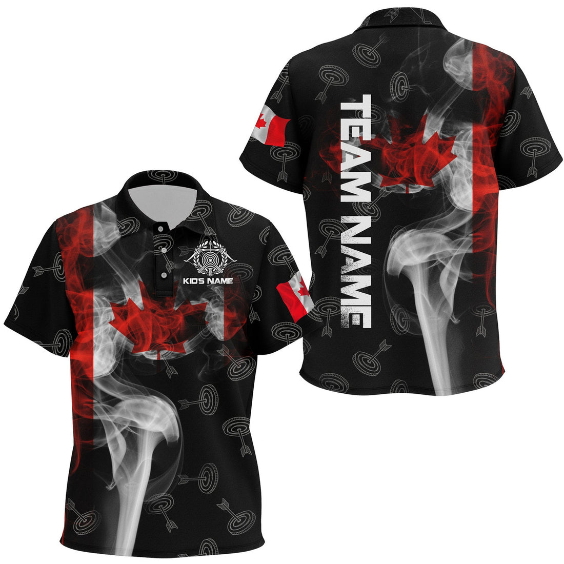 FUNSTUFFPRINT Personalized Vintage Smoke Canadian Flag Archery Polo Shirts For Kids Polo Shirt Size S-5XL