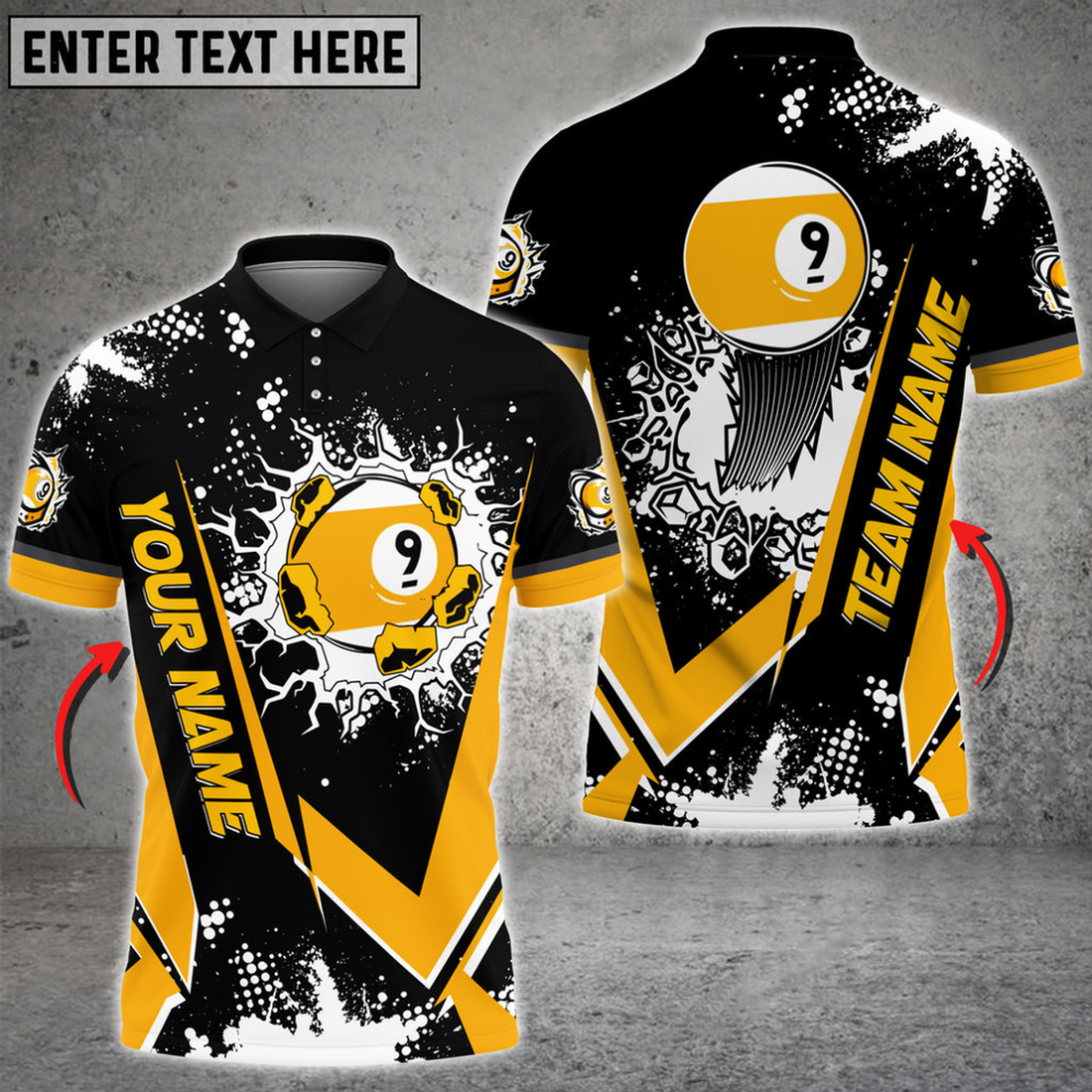 Custom Billiards Ball 9 Spinning Paint Personalized Name, Team Name Multicolor Option Polo Shirt