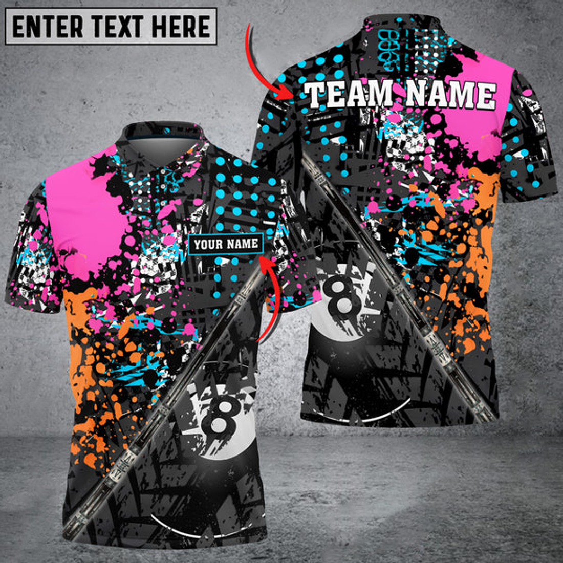 Custom Cue Billiards 8 Ball Colorful Personalized Name 3D Polo Shirt, Gift for Billiards Lovers