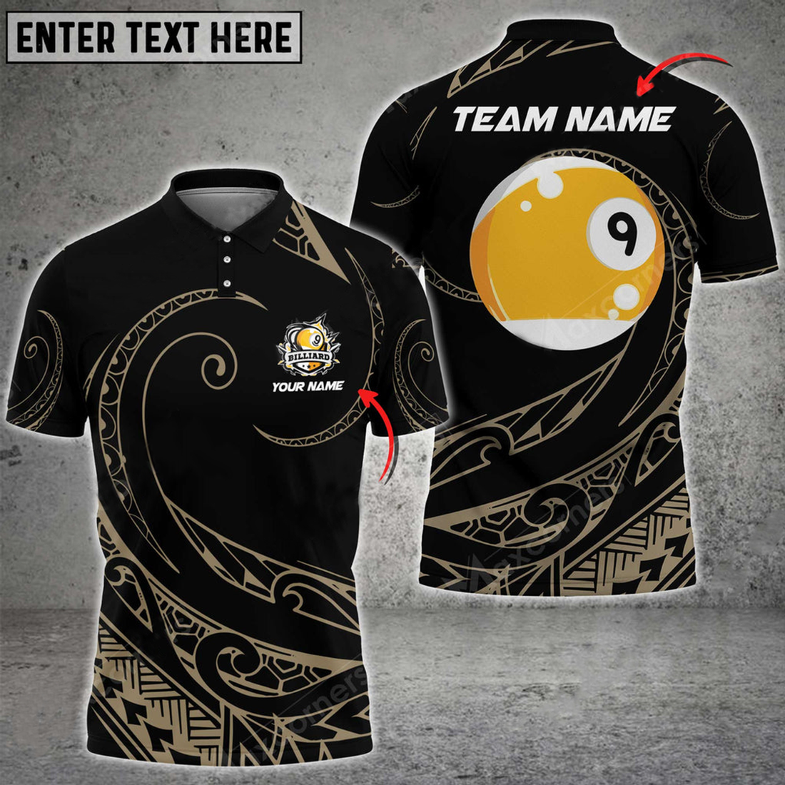 Custom Billiards 9 Ball Hawaii Polynesian Personalized Name, Team Name Polo Shirt