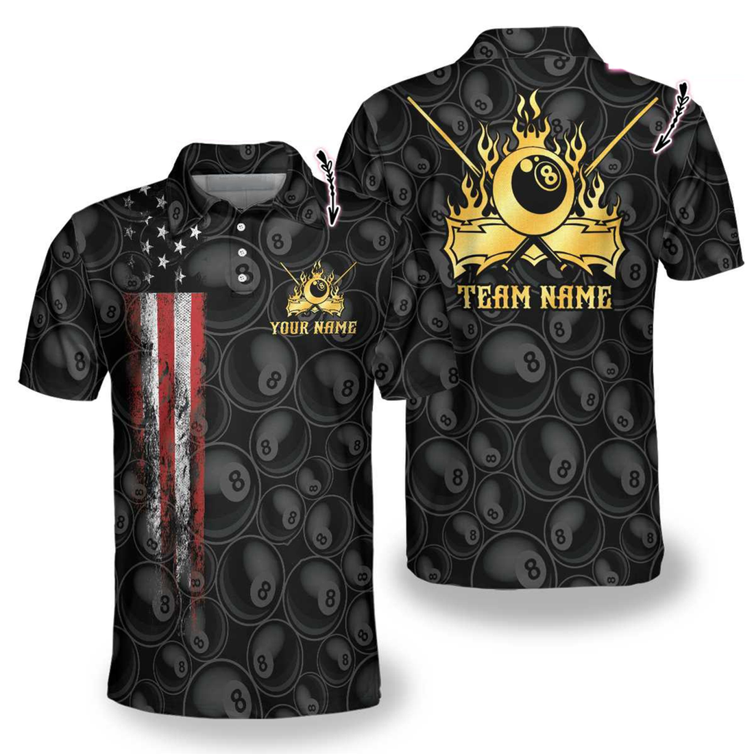 Custom 3D Billiards 8 Ball Pool Player US Flag Pattern Billiard Polo Shirt, Flag Shirt, Uniform Billiard Team Shirt