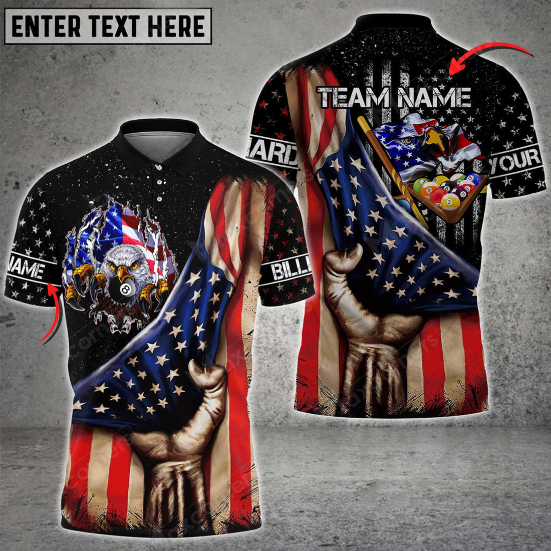 Personalized Name 3D Polo Shirt, Flag Shirt for Billiard Lovers