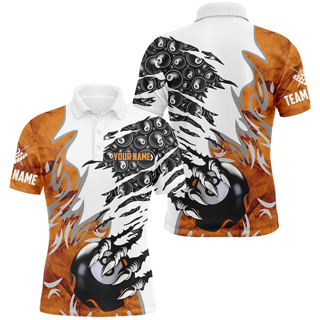 FUNSTUFFPRINT Personalized Funny 8 Ball Fire Billiard Polo Shirts For Men Best Custom Polo Shirt Size S-5XL