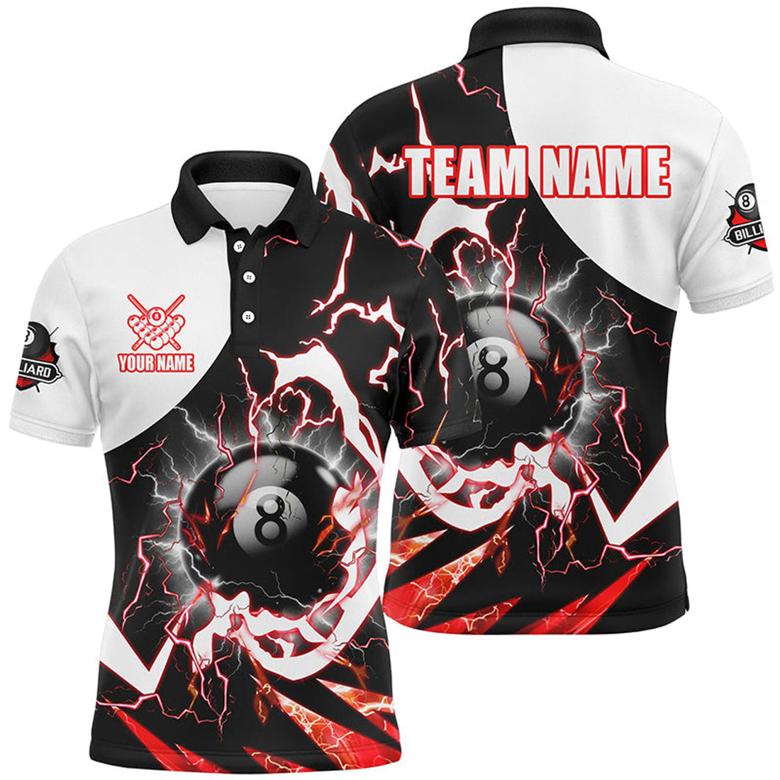 FUNSTUFFPRINT Personalized 8 Ball Pool Men Billiard Polo Shirts Custom Lightning Thunder Red Billiard Team Polo Shirt Size S-5XL