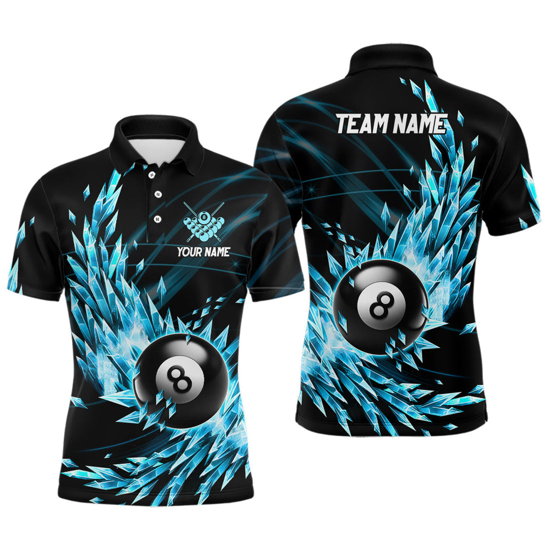 FUNSTUFFPRINT 3D Blue Frozen Ice Men Billiard Polo Shirts Personalized 8 Ball Pool Billiard Attire Polo Shirt Size S-5XL