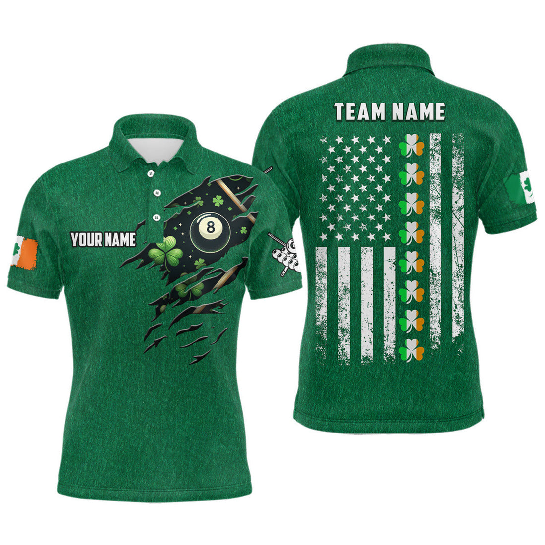 Custom St Patrick's Day American Flag Custom Men Billiard Polo Shirts, Green Patrick Billiard Shirts