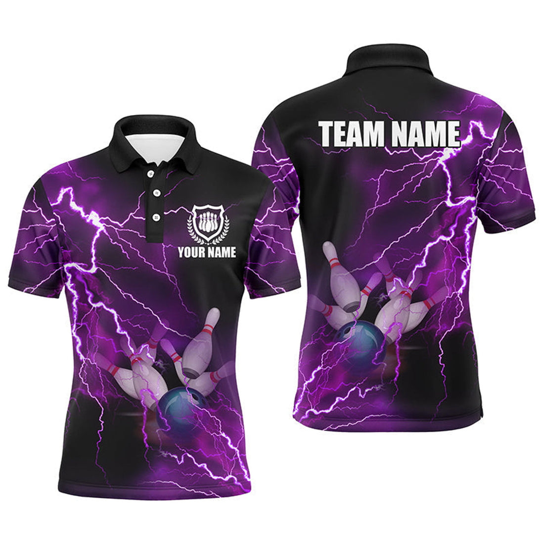 Custom Mens polo bowling shirts Custom purple lightning thunder Bowling Team Jersey, gift for team Bowlers