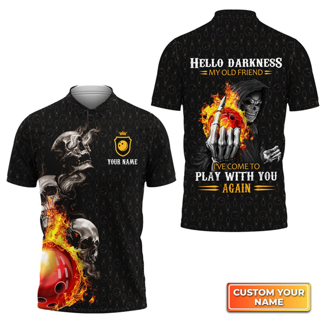 Custom Bowling Skull Hello Darkness My Old Friend Personalized Name 3D Polo Shirt Gift For Bowler