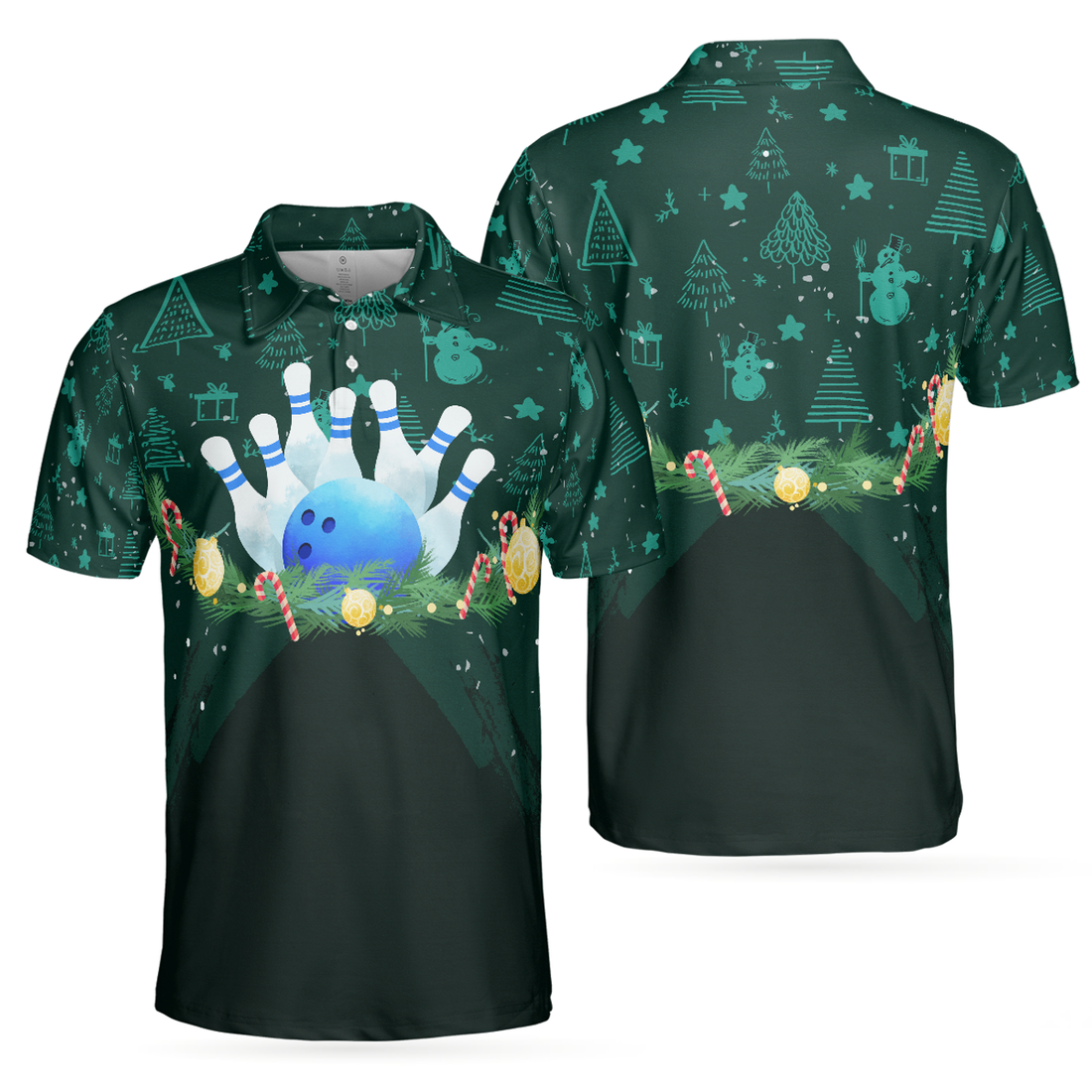 Bowling Men Polo Shirt - Christmas Pattern Polo Shirt For Men - Best Bowling Gift For Men - Perfect Gift For Friend, Family, Bowling Lovers
