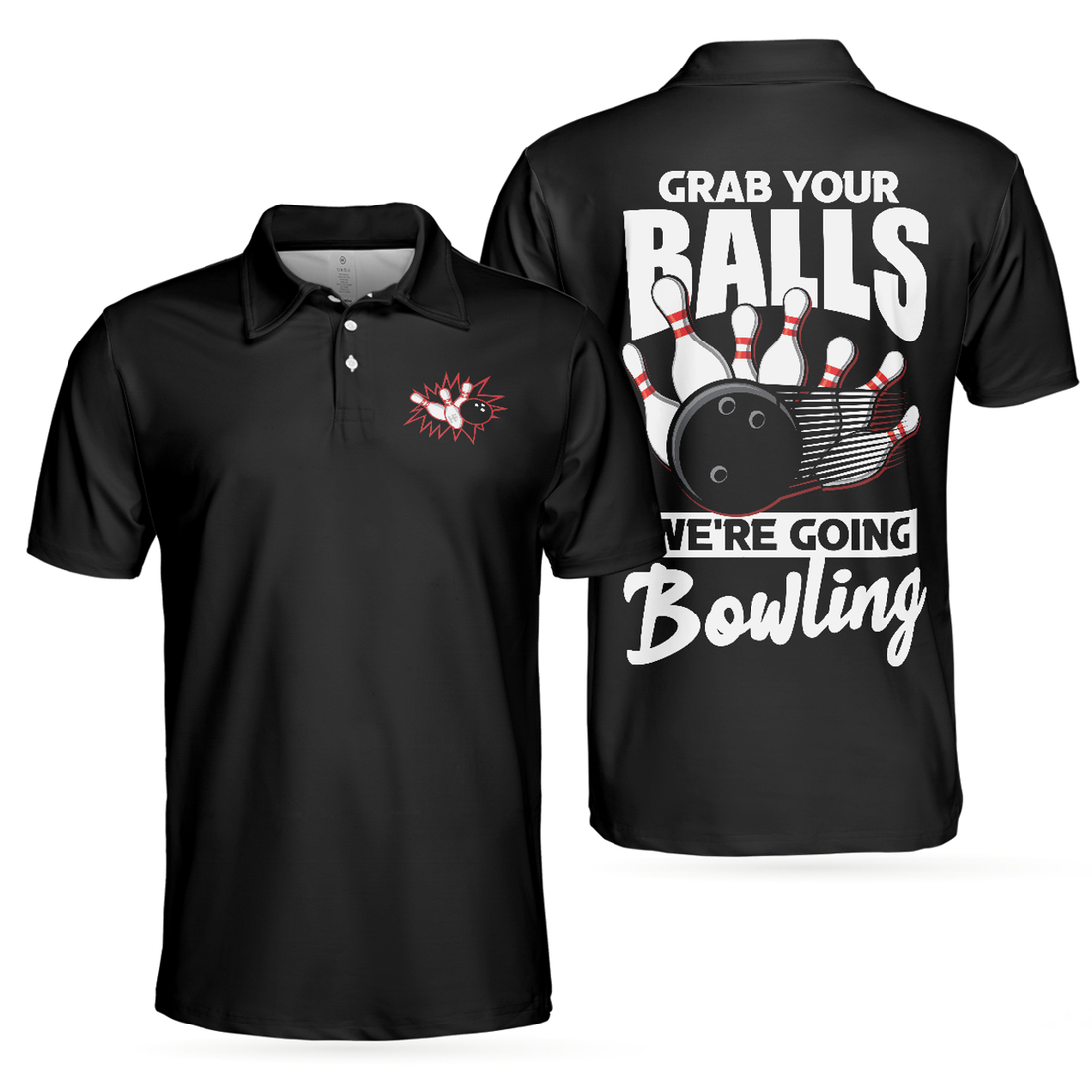 Bowling Men Polo Shirt - Black Bowling Men Polo Shirt, Grab Your Balls We're Going Bowling Shirt For Men - Perfect Gift For Friend, Family, Bowling Lovers