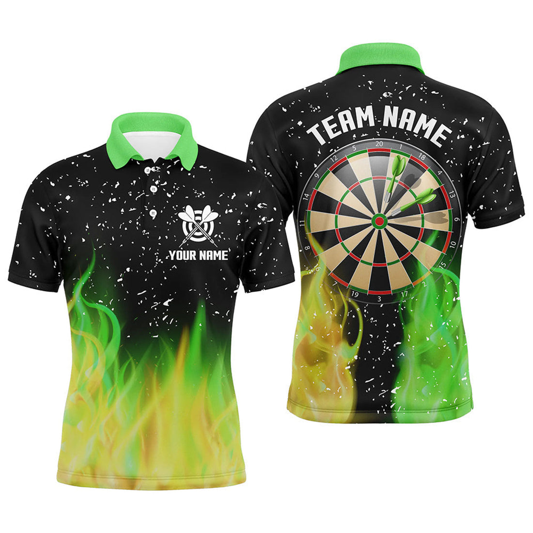 Personalized Green Black Flame Mens Darts Polo Shirt Darts Shirt For Men Dart Jerseys