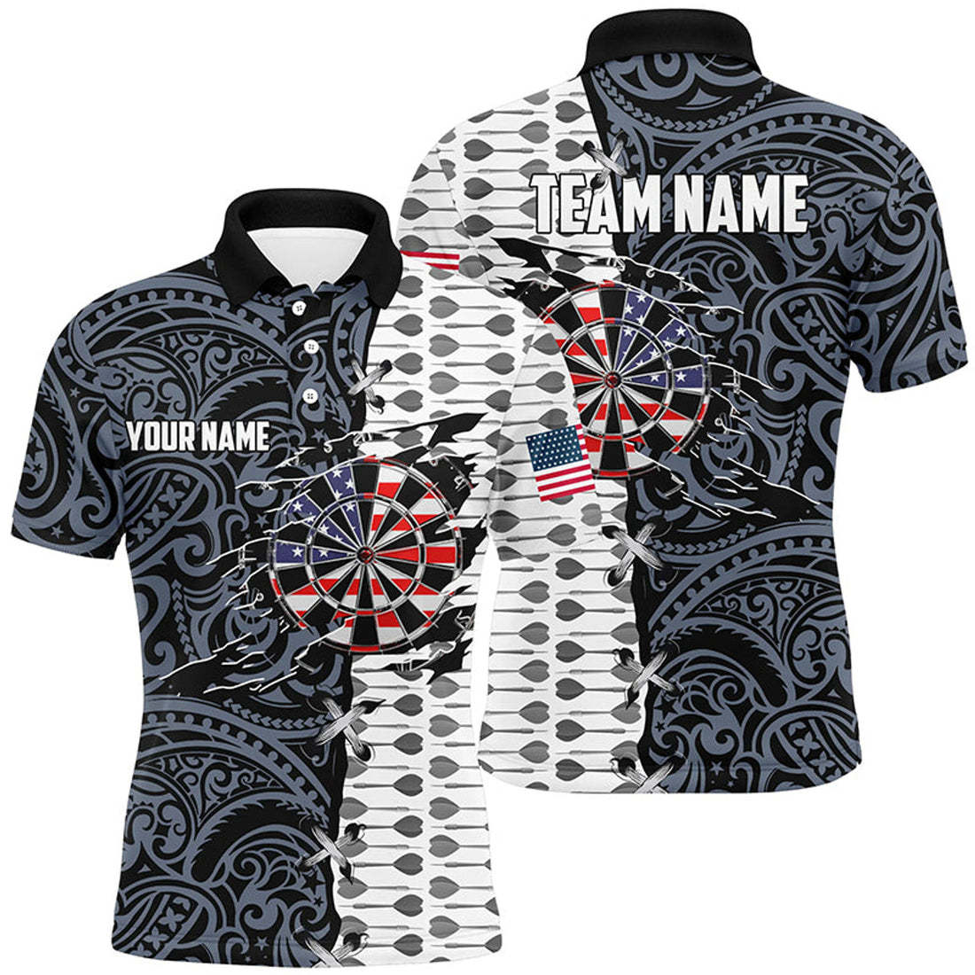 FUNSTUFFPRINT Split Tribal American Flag Mens Darts Polo Shirts Custom Patriotic Darts Polo Shirt Size S-5XL