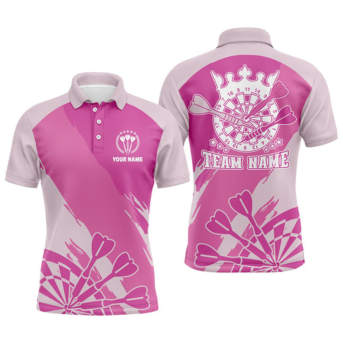 FUNSTUFFPRINT Personalized Pink Mens Darts Polo Shirt Custom Pink Cool Dart Polo Shirt Size S-5XL