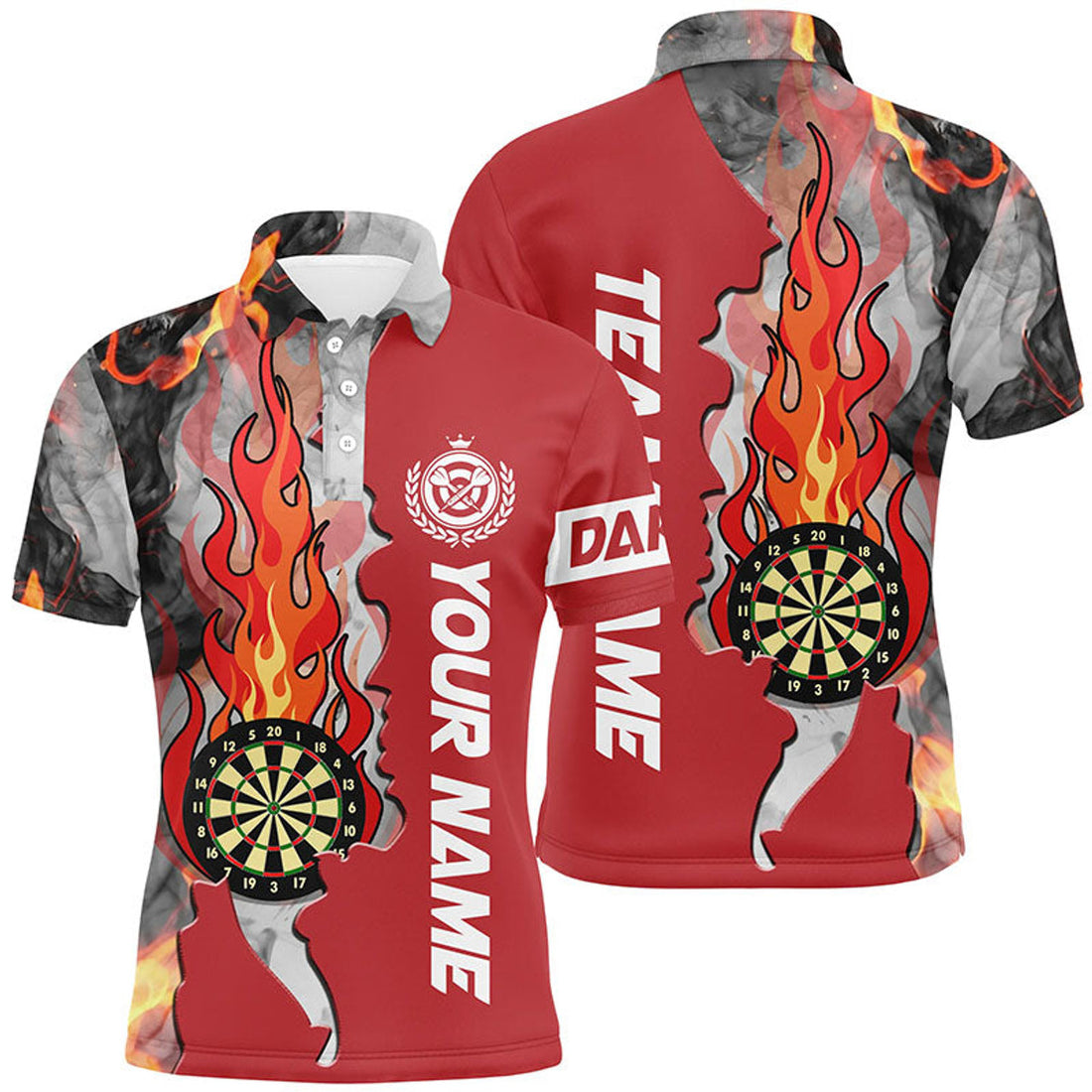 FUNSTUFFPRINT Personalized Red Darts Board Fire Flame Smoke Men Darts Polo Shirt Size S-5XL
