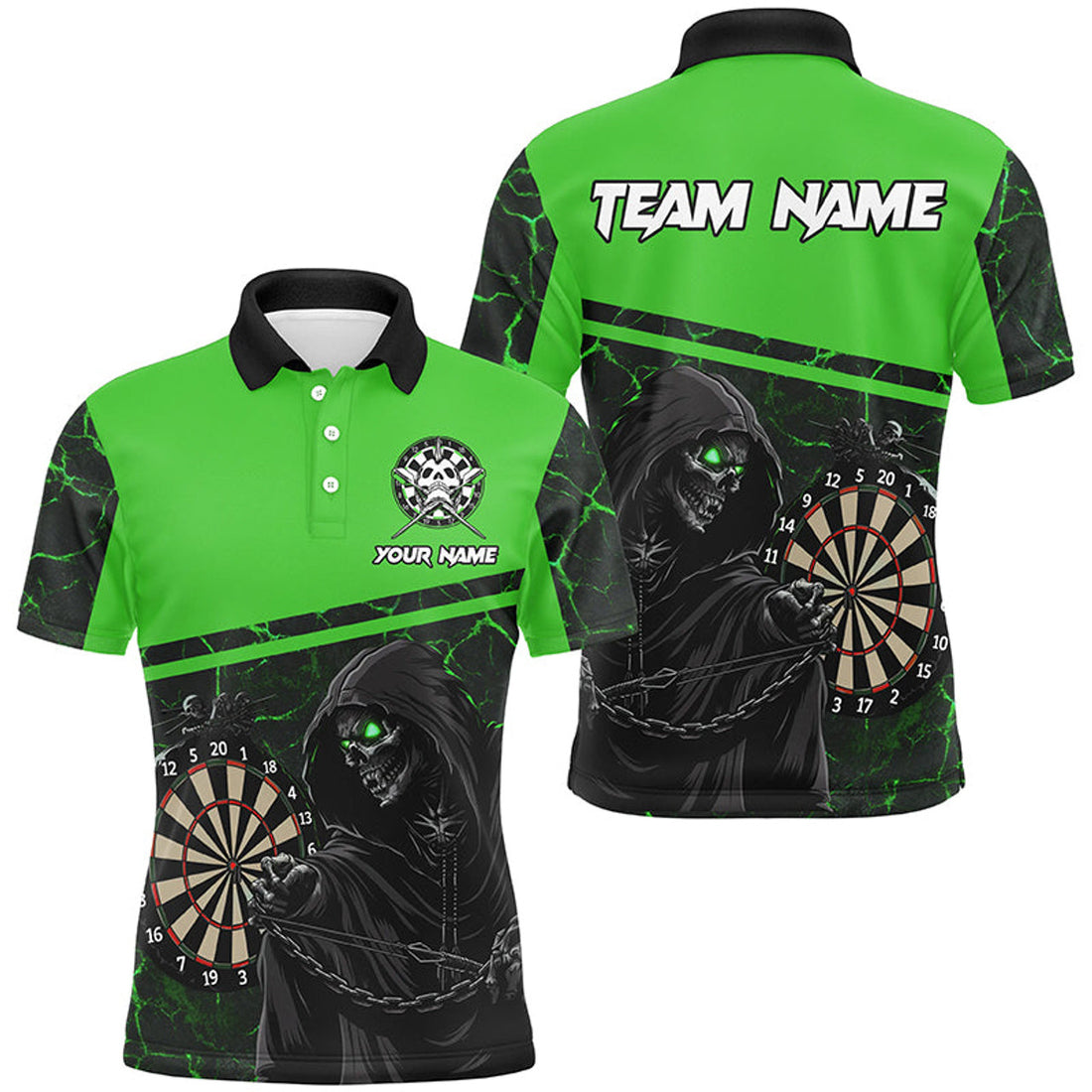FUNSTUFFPRINT Personalized Death Skeleton Custom Green Darts Polo Shirt Size S-5XL