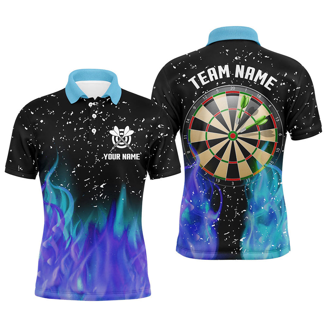 FUNSTUFFPRINT Personalized Turquoise & Black Flame Darts Men Polo Shirt Darts Shirt For Men Dart Polo Shirt Size S-5XL