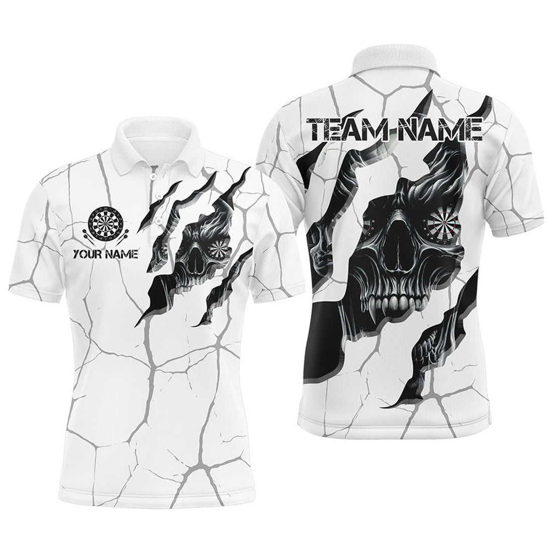 FUNSTUFFPRINT Personalized Skull White Grunge Darts Polo Shirt Size S-5XL