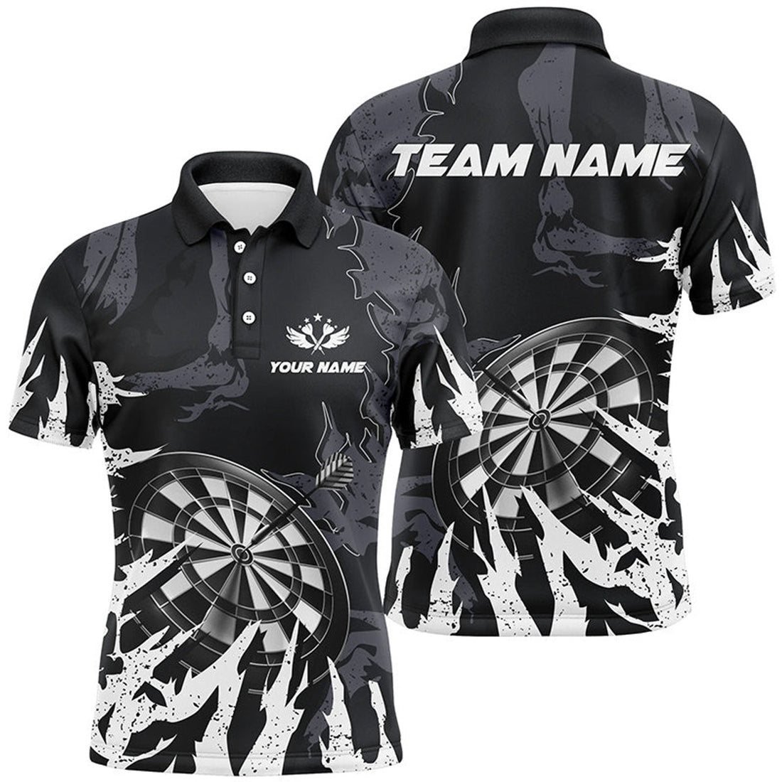 FUNSTUFFPRINT Black Grey Mens Darts Polo Shirt With Name Customized Darts Shirts For Men Dart Polo Shirt Size S-5XL