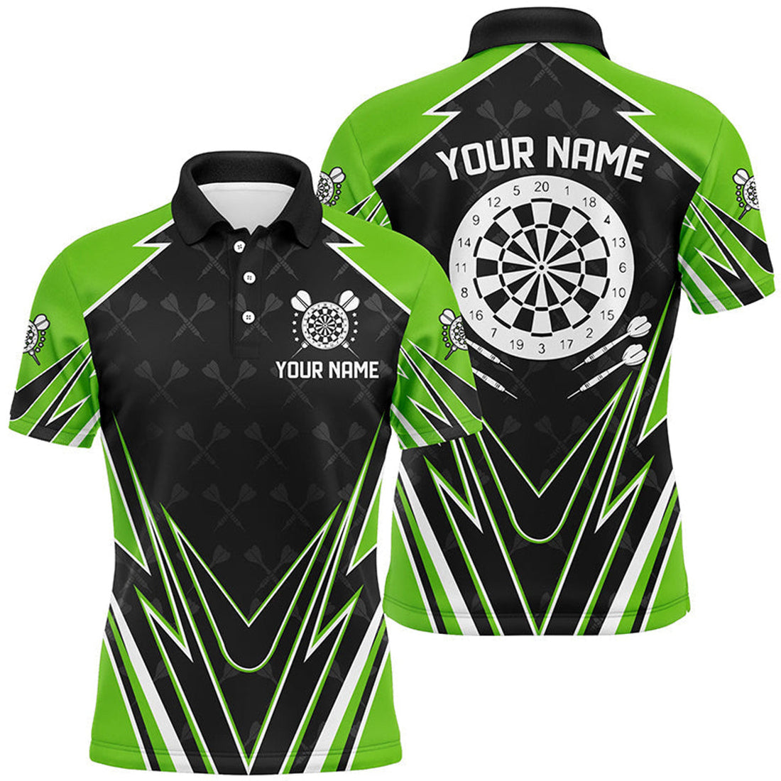 Custom Black And Green Dartboard Men Darts Polo Shirts Customized Name Darts Team Jersey Uniform