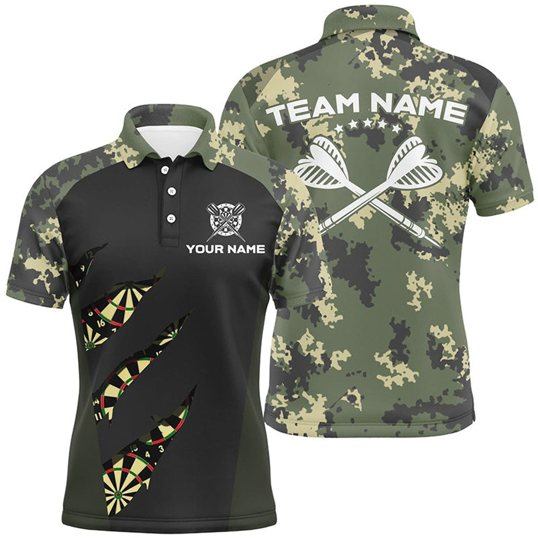 Custom Green Camo Darts Men Polo Shirt Custom Camouflage Darts Shirt For Men Darts Team Jersey