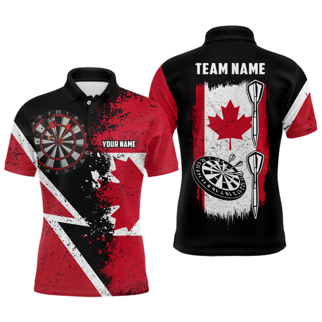 Custom Retro Canada Flag Mens Darts Polo Shirt Custom Patriotic Darts Shirt For Men Dart Jerseys