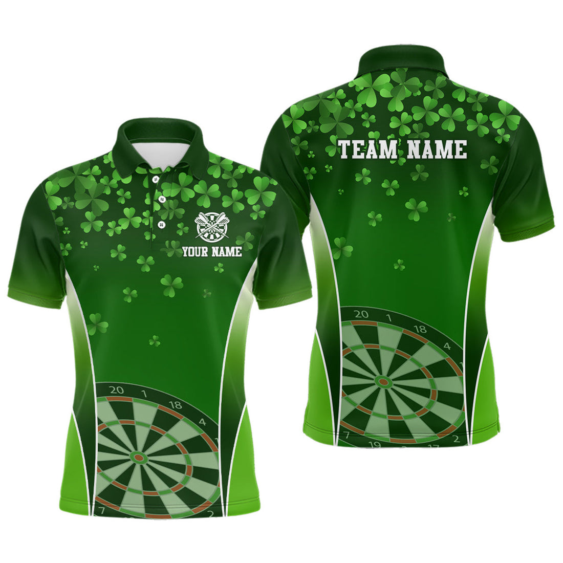 Custom 3D Green Clovers St Patrick Day Mens Darts Polo Shirt Personalized Dart Jersey For Men