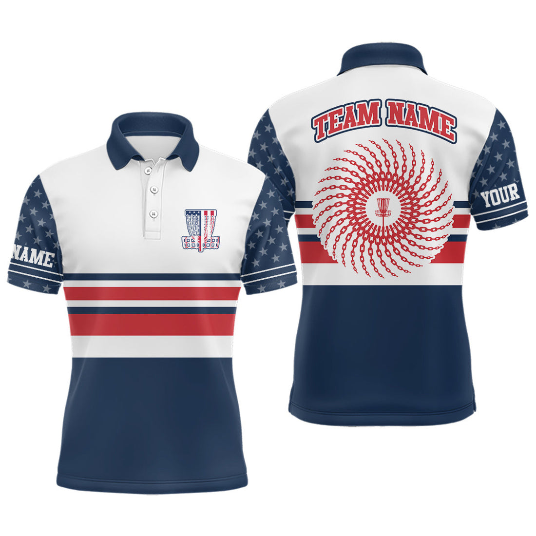 FUNSTUFFPRINT Disc Golf American Flag Mens Polo Shirt Personalized Patriotic Disc Golf Polo Shirt Size S-5XL