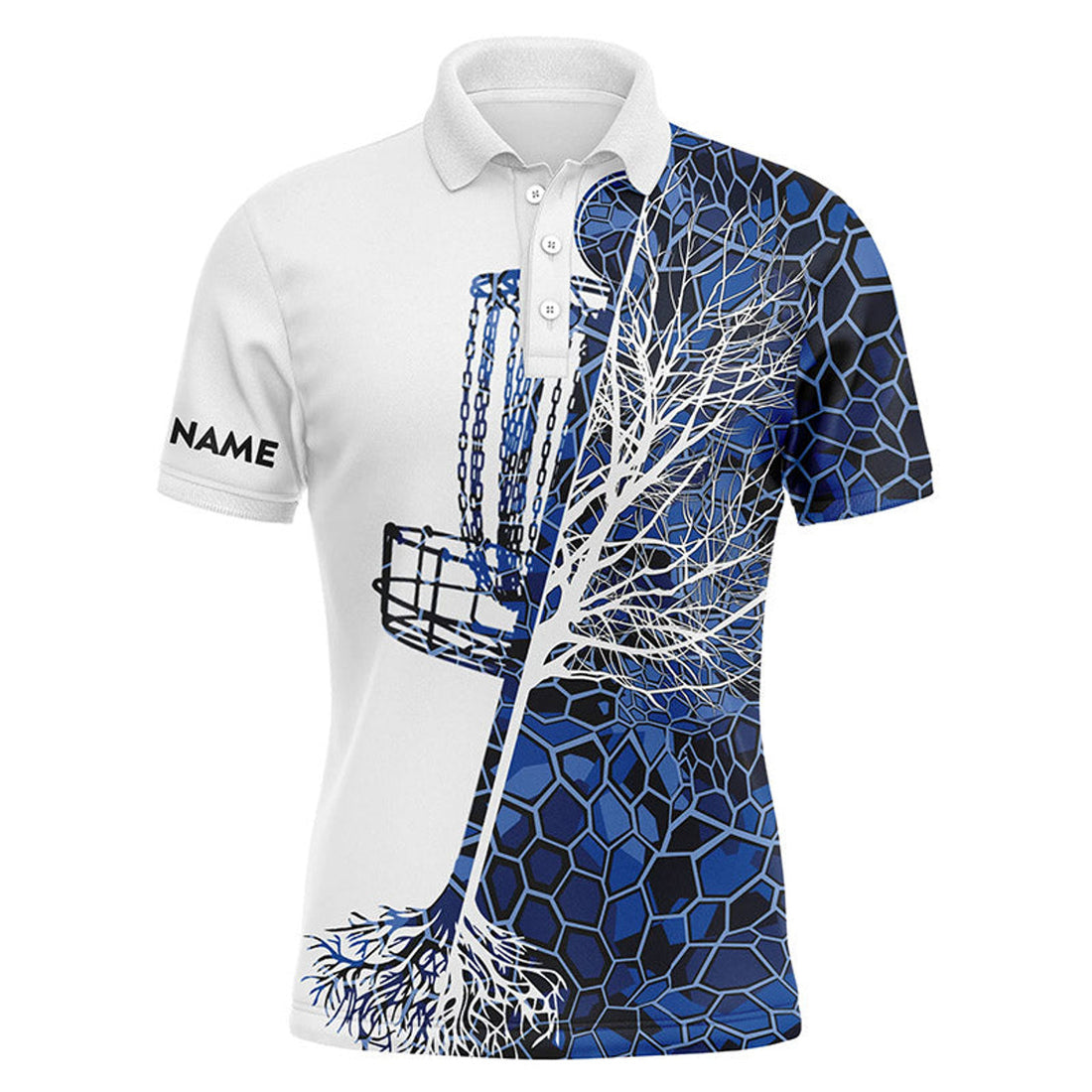 Custom Disc Golf Men Polo Shirt - Blue Camo Custom Name Disc Golf Basket Apparel - Personalized Sports Gift For Golf Lover, Male, Husband, Boyfriend, Team