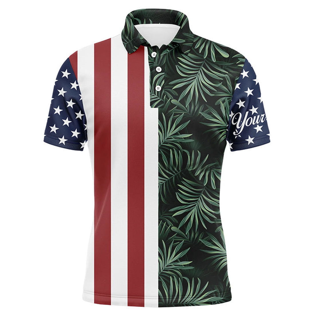 FUNSTUFFPRINT Mens golf polo shirts American flag patriotic custom tropical leaves pattern golf shirts for men Polo Shirt Size S-5XL