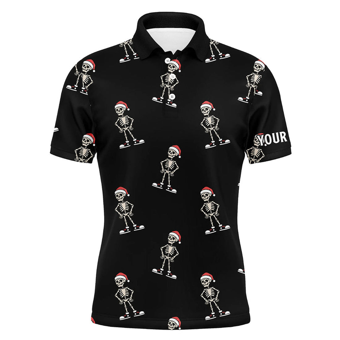 FUNSTUFFPRINT Cartoon Skeleton With Santa Hat Christmas Mens Golf Polo Shirts Black Skull Golf Shirts For Men Polo Shirt Size S-5XL