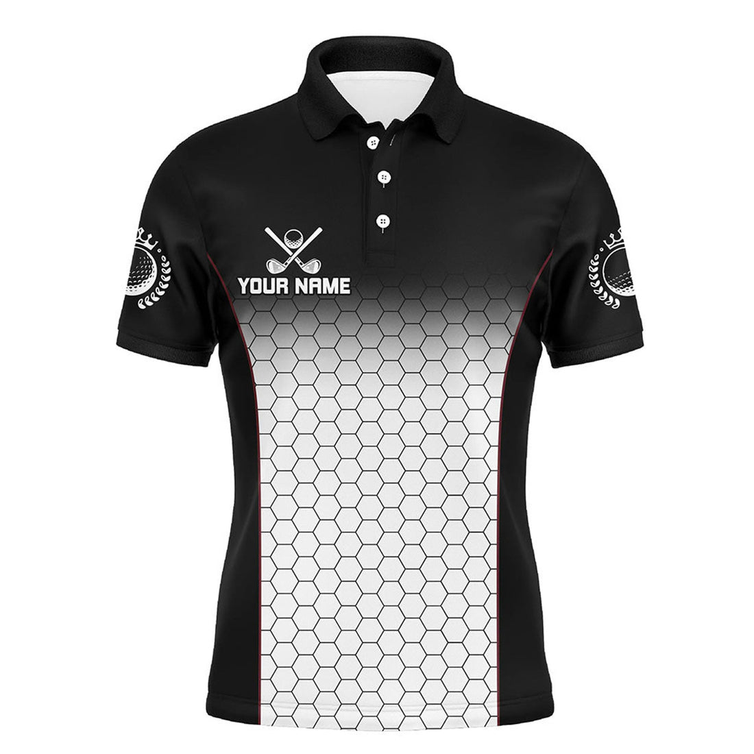 FUNSTUFFPRINT Black And White Mens Golf Polo Shirts, Personalized Golf Shirts For Men, Cool Golf Gifts Polo Shirt Size S-5XL