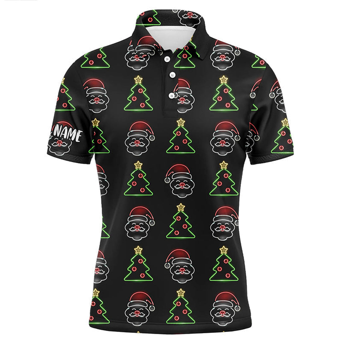 FUNSTUFFPRINT Neon Christmas Tree And Santa Mens Golf Polo Shirts Custom Funny Golf Shirts For Men Polo Shirt Size S-5XL