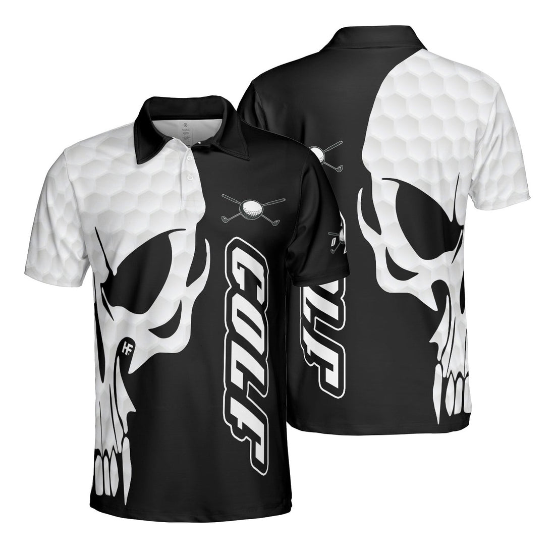 Golf And Skull Golf Men Polo Shirt, Black And White Golf Pattern Polo Shirt, Best Golf Shirt For Men, Best Gift For Golfers