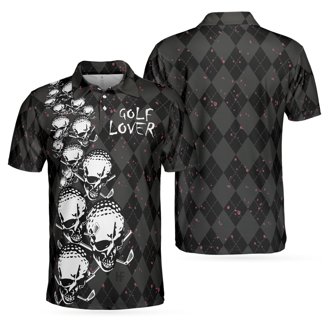 Elegant Argyle Pattern And Skull Golf Lover Polo Shirt, Black Skull Golf Shirt For Men, Best Gift For Men