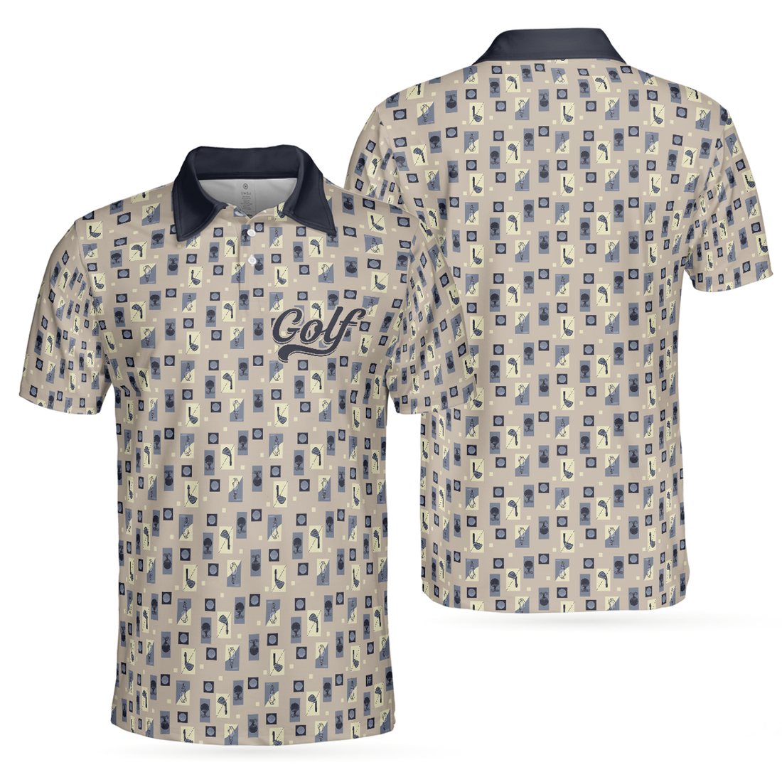 Golf Objects Pattern Short Sleeve Men Polo Shirt, Golf Tee And Club Polo Shirt, Best Golf Shirt For Men