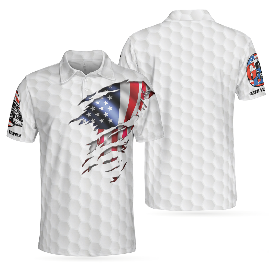 GE Golf American Flag Men Polo Shirt, Golf Ball Pattern Shirt For Men, Gift For Golfers