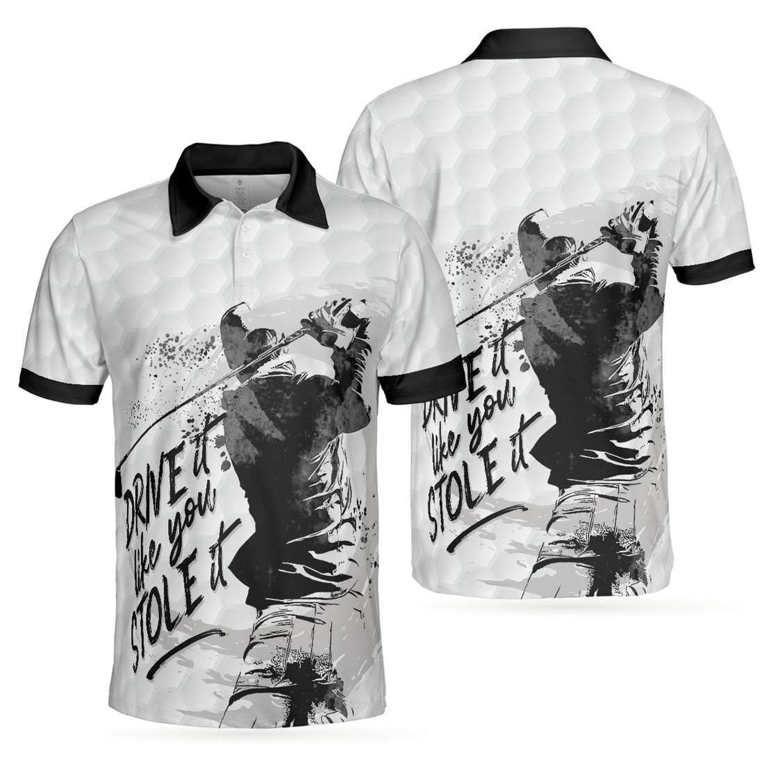 Drive It Like You Stole It Golf Polo Shirt, Short Sleeve Black And White Golf Shirt For Men, Golf Gift For Men, Best Gift Ideas For Men Golfers